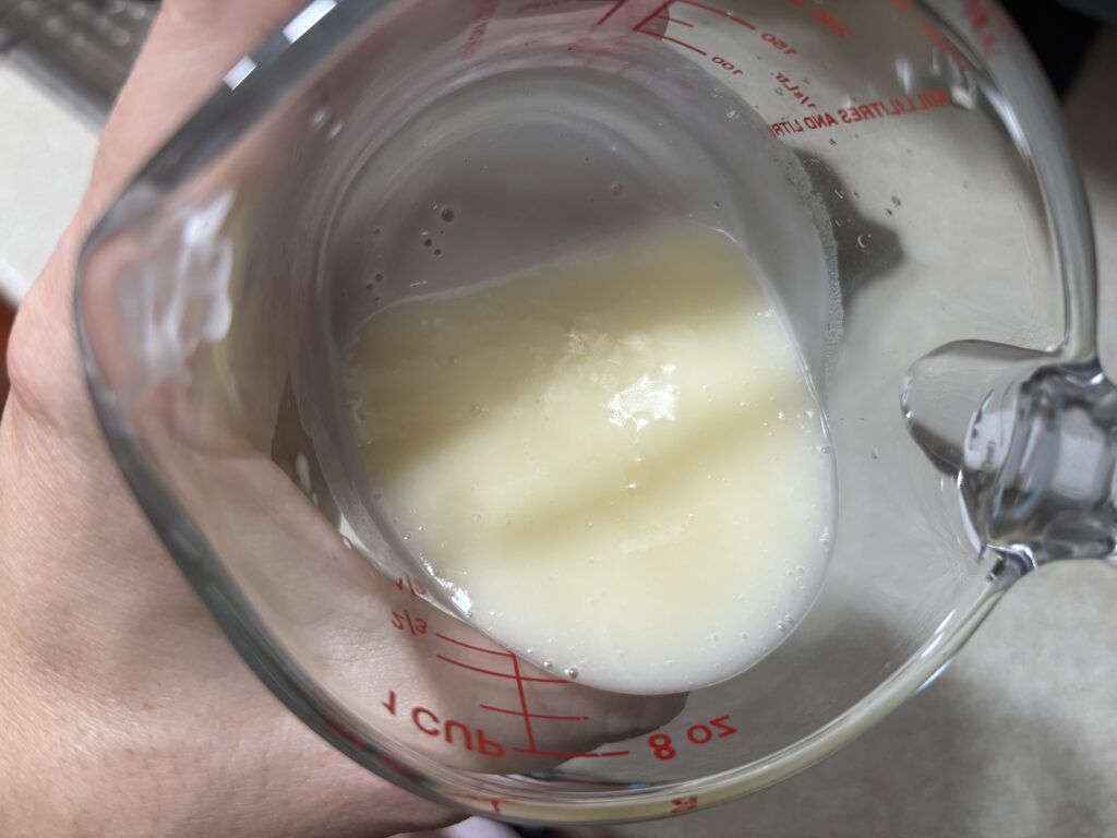 Lo volví a intentar y esa vez no se cortó pero quedó muy muy líquida, imposible de usar. Las dos siguientes versiones se separaban las fases, la siguiente se volvió a cortar…Después de tanto tiempo no me iba a dar por vencida, así que probé una última vez. A la sexta vez conseguí una crema muy blanca con muy buena textura. Ni muy líquida ni muy espesa, ¡por fin!