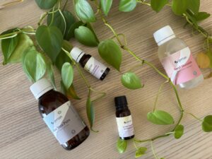 - Fase acuosa: todos los hidrolatos, infusiones y jugos. También los principios activos que sean solubles en agua y se puedan someter a altas temperaturas (si vas a calentar la fase acuosa), las gomas solubles en agua en el caso de los geles y los tensioactivos solubles en agua.